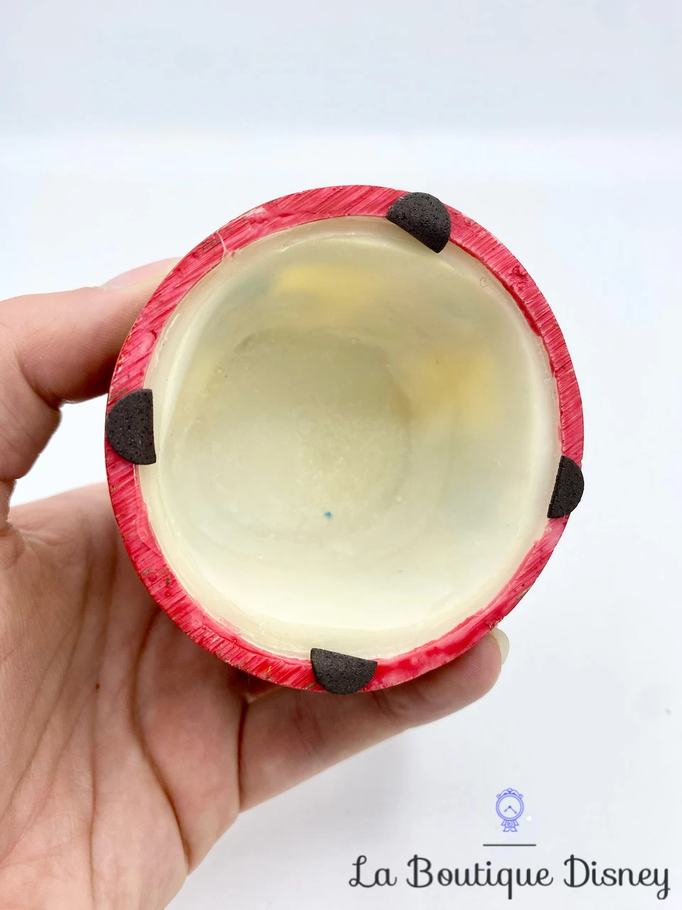 Boite en résine petit format, style « boite à dent » sur le thème du dessin animé Dumbo. La boite représente un chapiteau de cirque bleu et jaune. Devant le chapiteau, se trouvent les deux personnages de Dumbo l’éléphant gris et de sa maman Madame Jumbo. À l’arrière se trouvent différents clowns du cirque. Le dessus du chapiteau s’ouvre et forme le couvercle de la boite.
