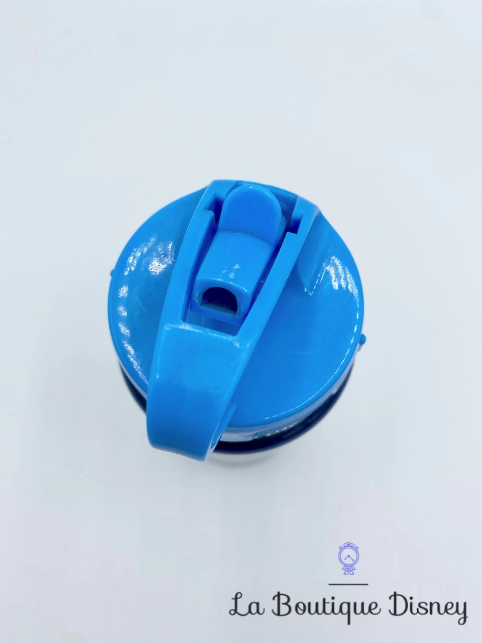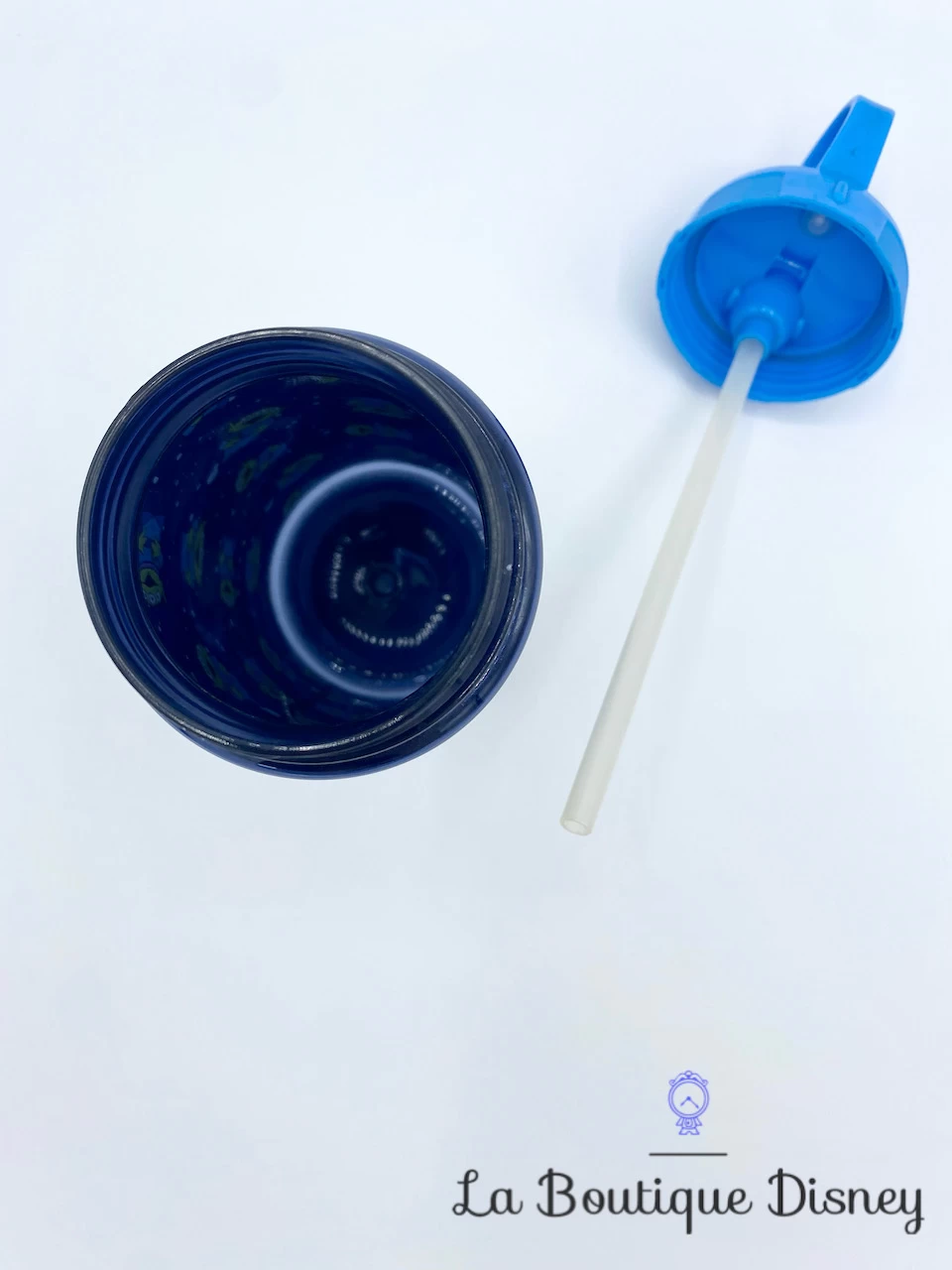 Gourde en plastique bleu avec pour motifs des petits Aliens de Toy Story. Capuchon dévissable.