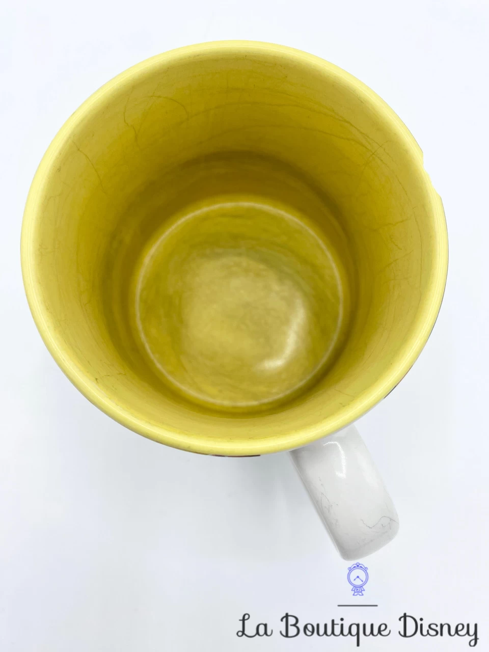 Tasse d’occasion qui reste cependant en état correct, il y a une ébréchure sur le haut de la tasse, des traces d’usure sur la anse, sur le motif et à l’intérieur du mug (visibles photos). Photos contractuelles. Lavée et désinfectée avant mise en vente.
